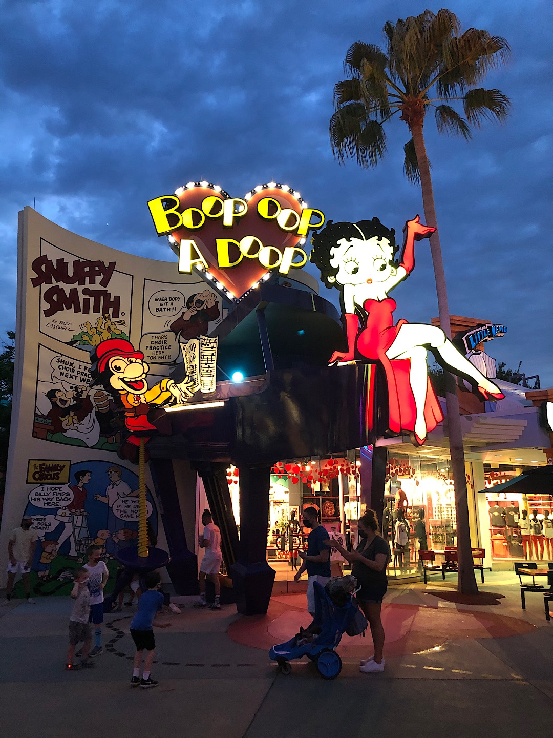 11H30, nous entrons enfin dans le parc. Des plans du parc sont disponible en anglais… pff. On décide de partir sur la droite direction Hollywood. Pas grand chose à voir dans ce quartier. Le décor est sympa, on avait l’impression d’. être là bas ! Nous avons pu apercevoir les personnages de Scooby-Doo.