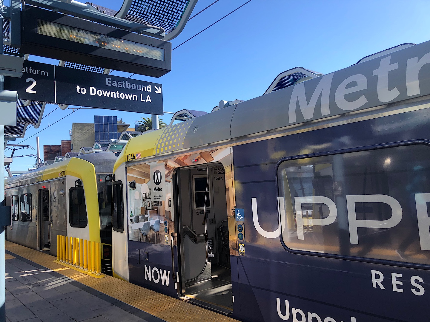 La ligne E du métro va jusqu’à Santa Monica, en peu plus d’1 heure. Le soleil est au rendez vous.