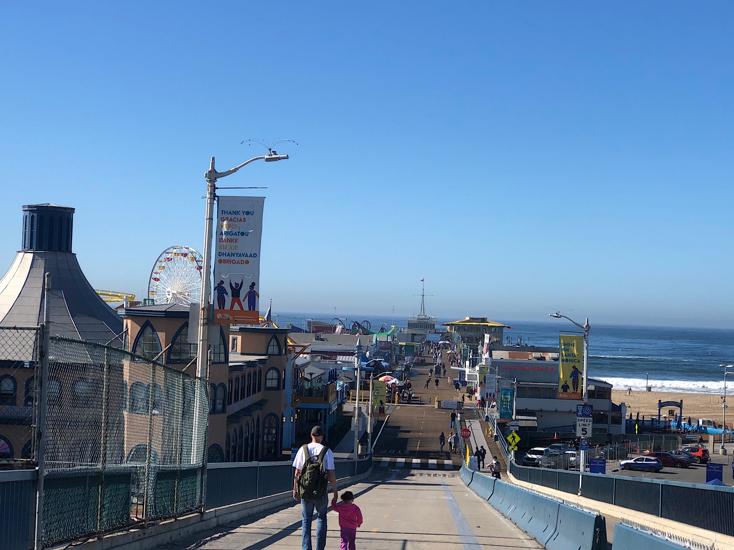 C’est le ponton le plus célèbre de la ville. C’est l’une des destinations touristiques numéro 1 de Santa Monica. Il y a un petit parc d’attraction avec une grande roue. On trouve également un bel aquarium, des restaurants qui ont tous une vue magnifique sur l’océan.